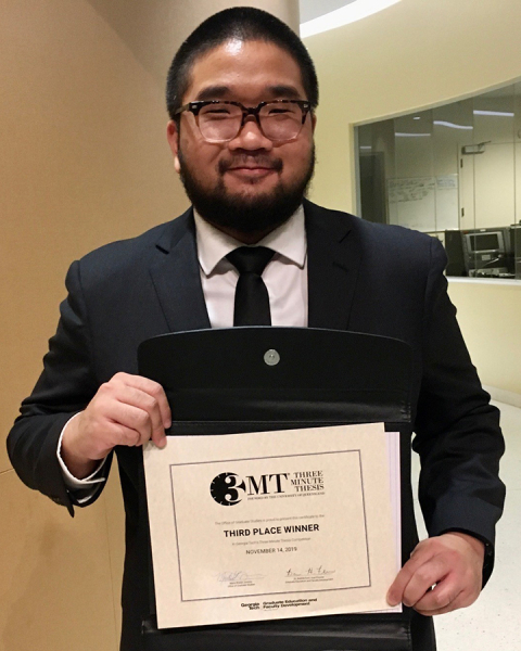 Chemistry Ph.D. student Jay Suttapitugsakul wins 3rd place in 2019 3MT competition.