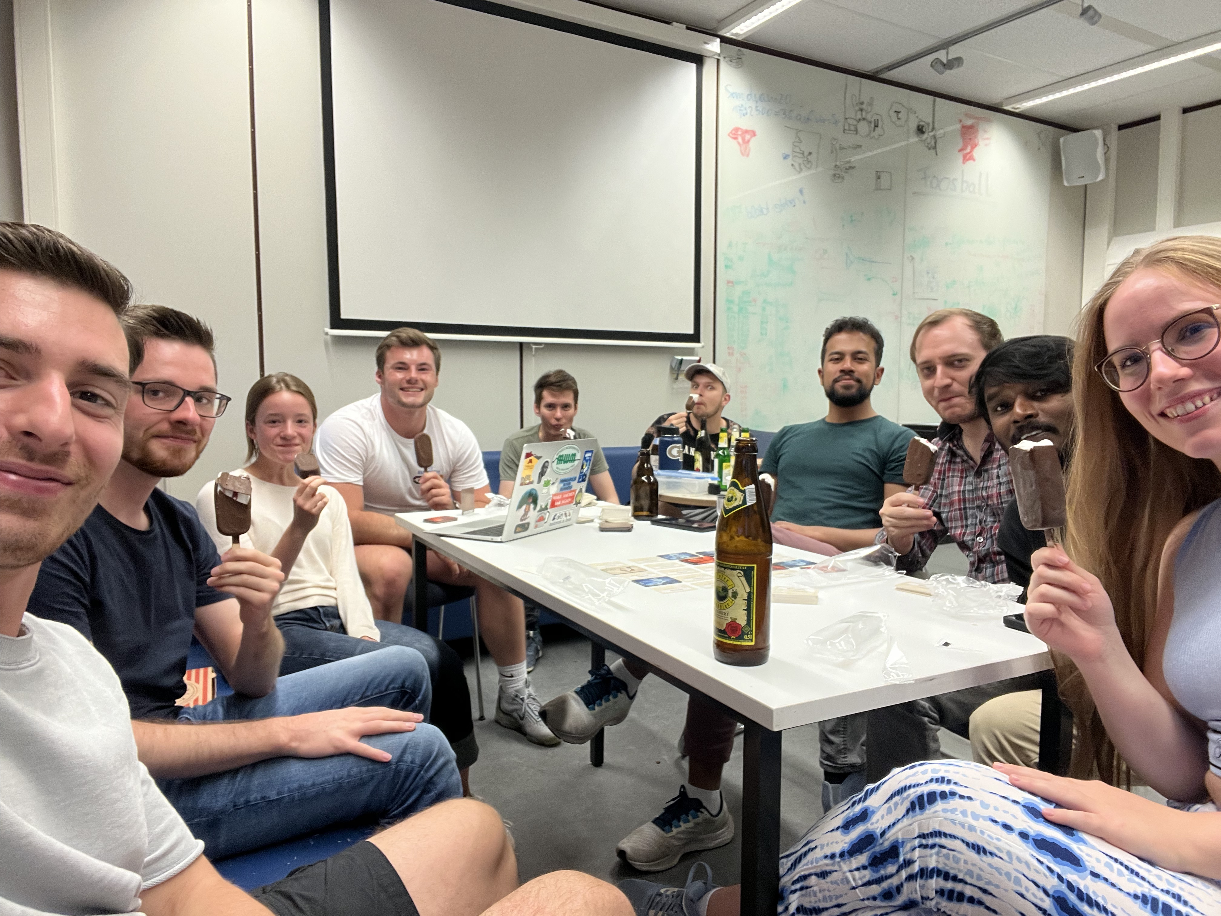Austin and his lab group celebrate with ice cream. Photo credit: Austin Shoemaker.